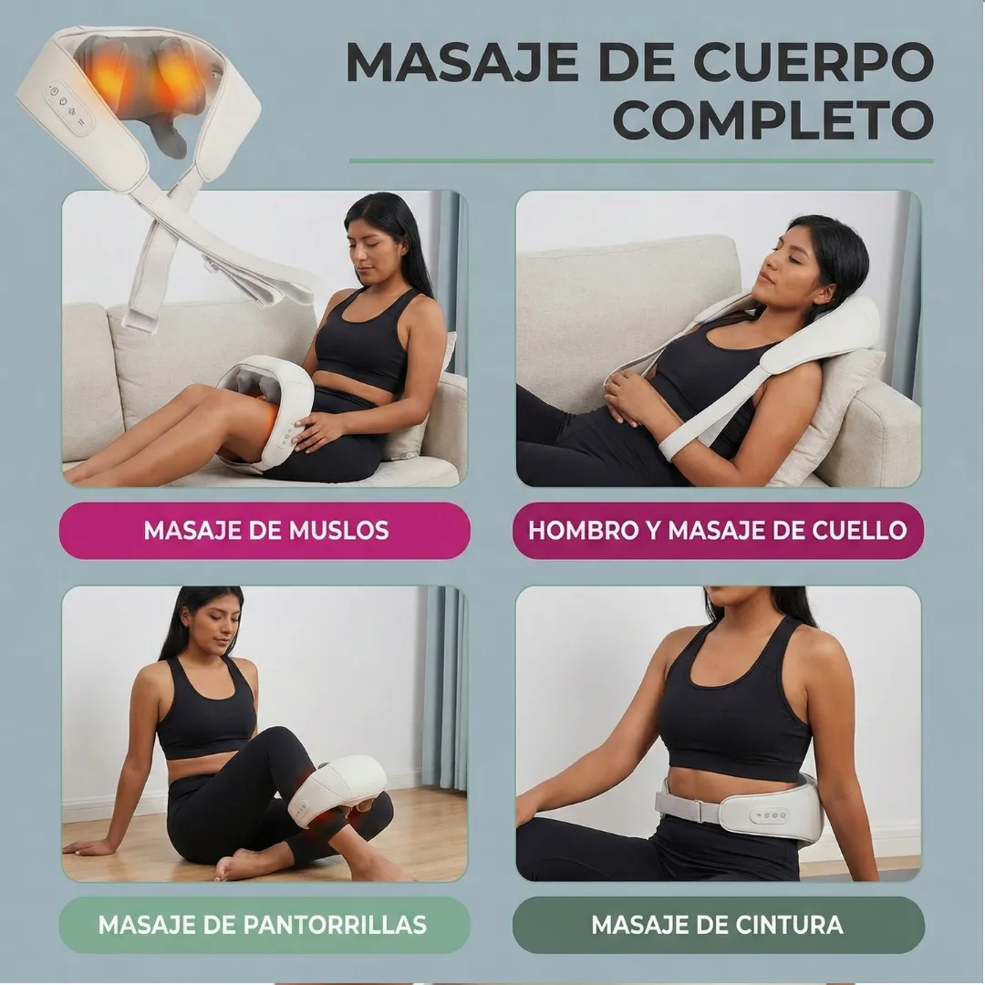 ¿Puedo usar el masajeador cervical en la cintura? Sí, su diseño permite colocarlo en cintura, piernas o espalda baja.