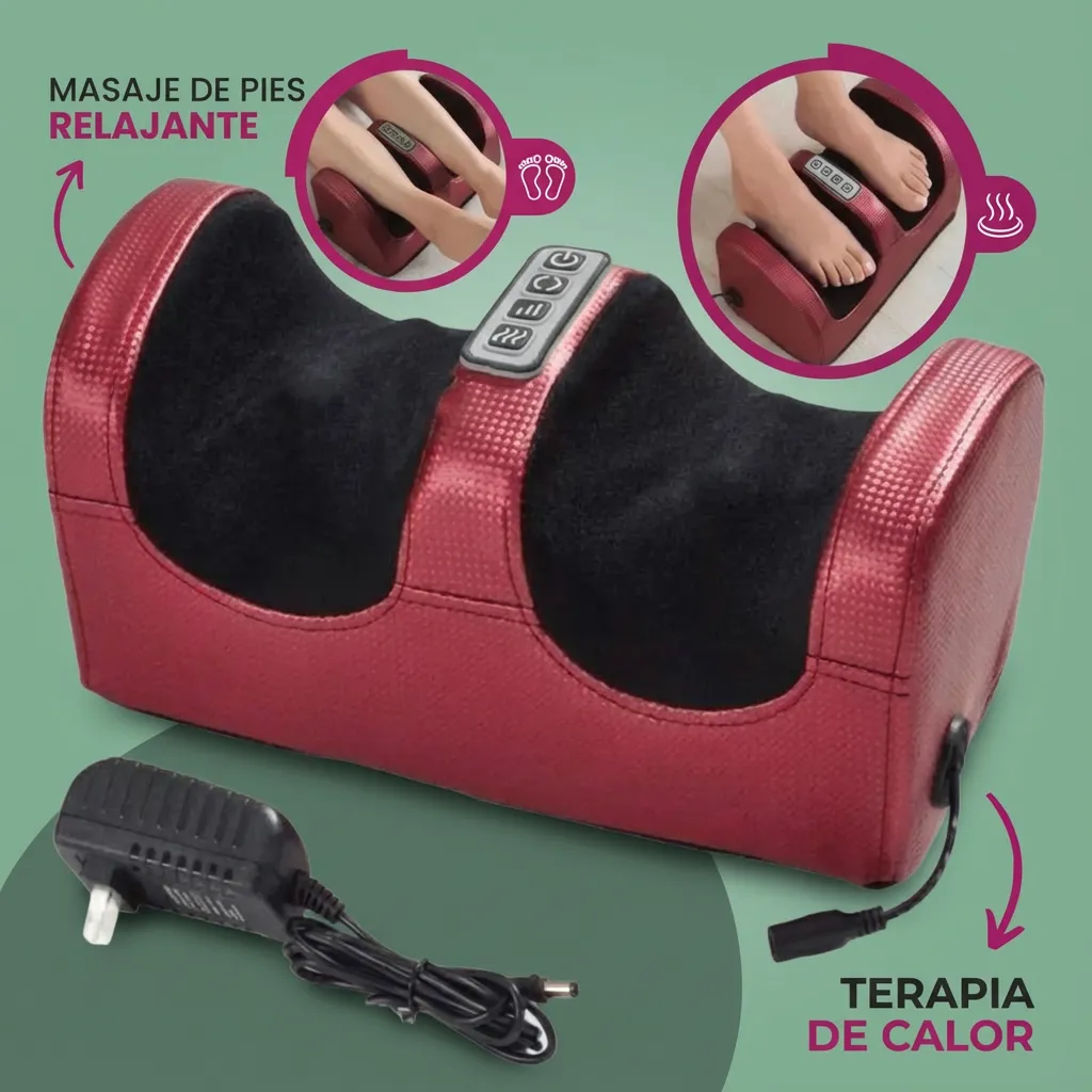 Masajeador Suavidad: Portátil, adaptable a pies y pantorrillas, función de calor opcional.